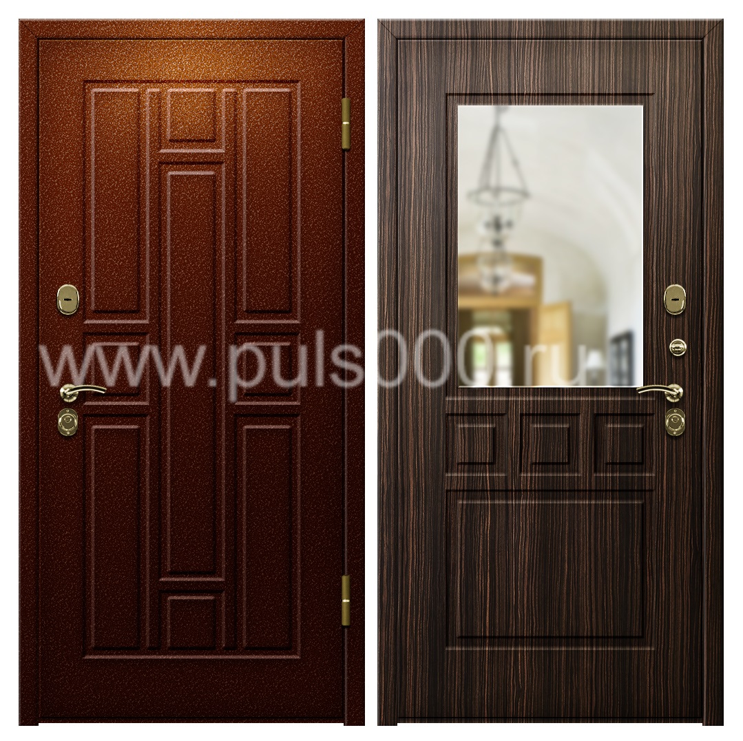 Железная дверь с зеркалом и утеплителем в квартиру PR-1093