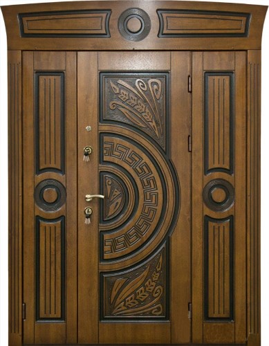Стальная дверь для коттеджа с отделкой массивом KJ-1306