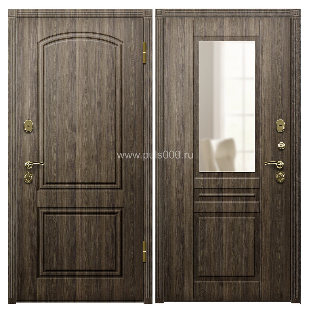 Входная дверь в квартиру металлическая МДФ с зеркалом орех MDF-310