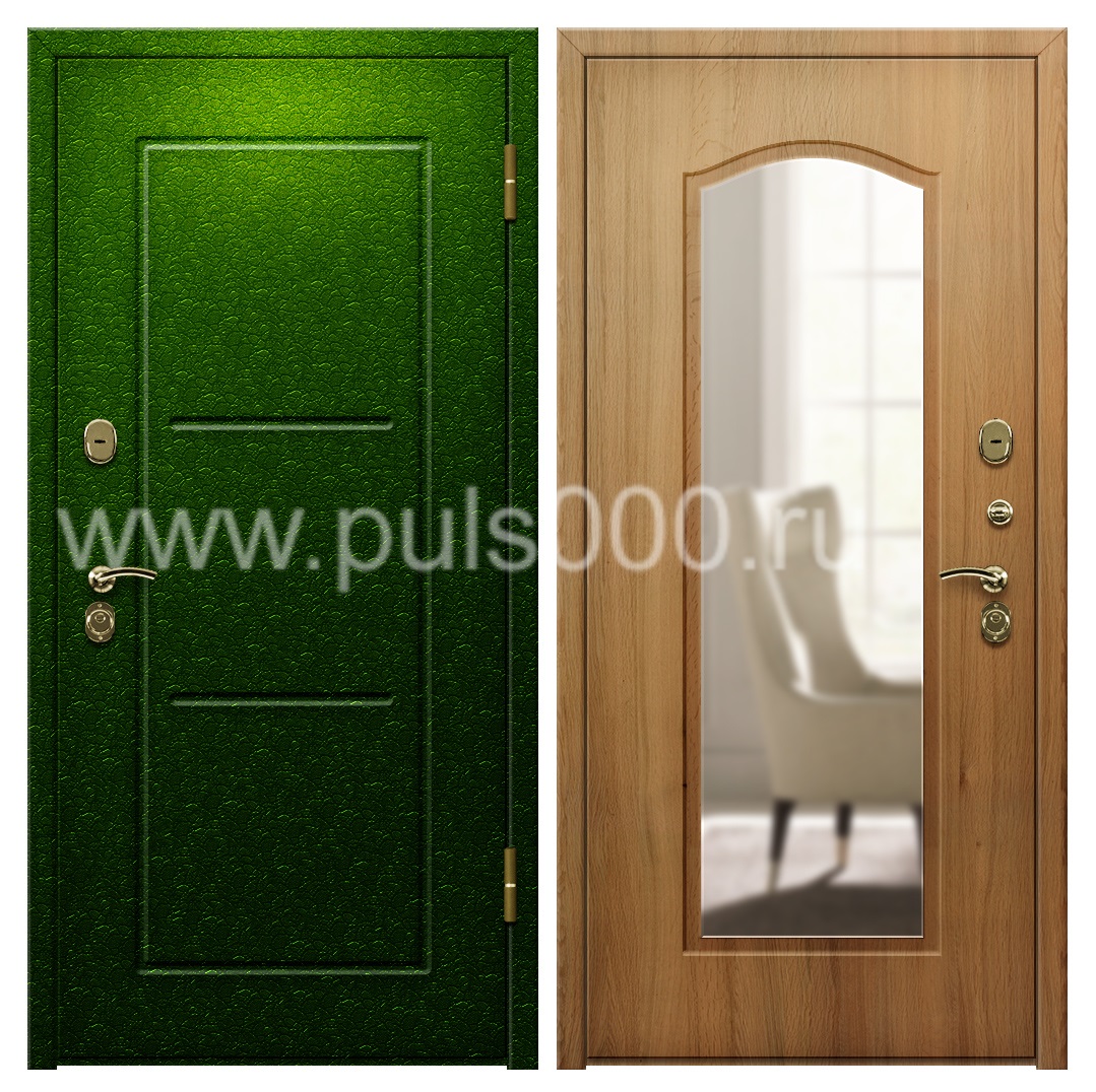 Входная дверь с напылением, зеркалом и шумоизоляцией в квартиру PR-1127