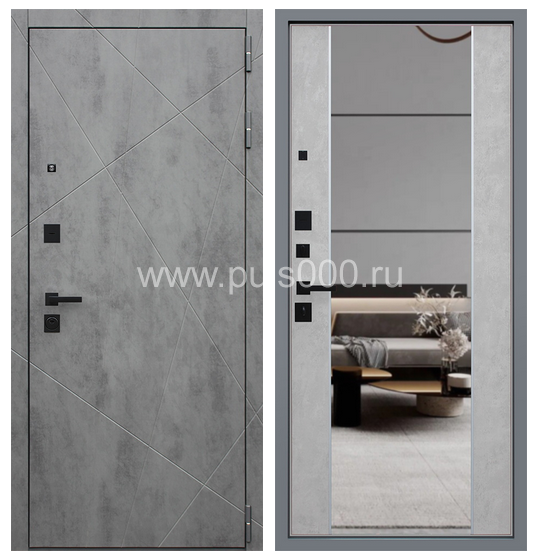 Металлическая входная дверь с фрезеровкой и зеркалом ZER-109